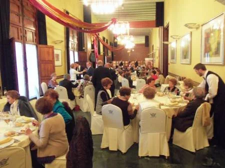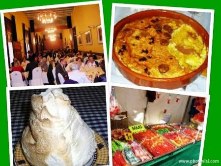 Comida de hermandad de Caballeros y Damas de la Orden, típico arroz y costra, pastel de gloria y las tradicionales bolas de San Antón.