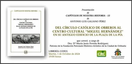En Orihuela, el martes 16 de abril de 2024, a las 19:30 h., en el Ateneo Cultural Casino Orcelitano,